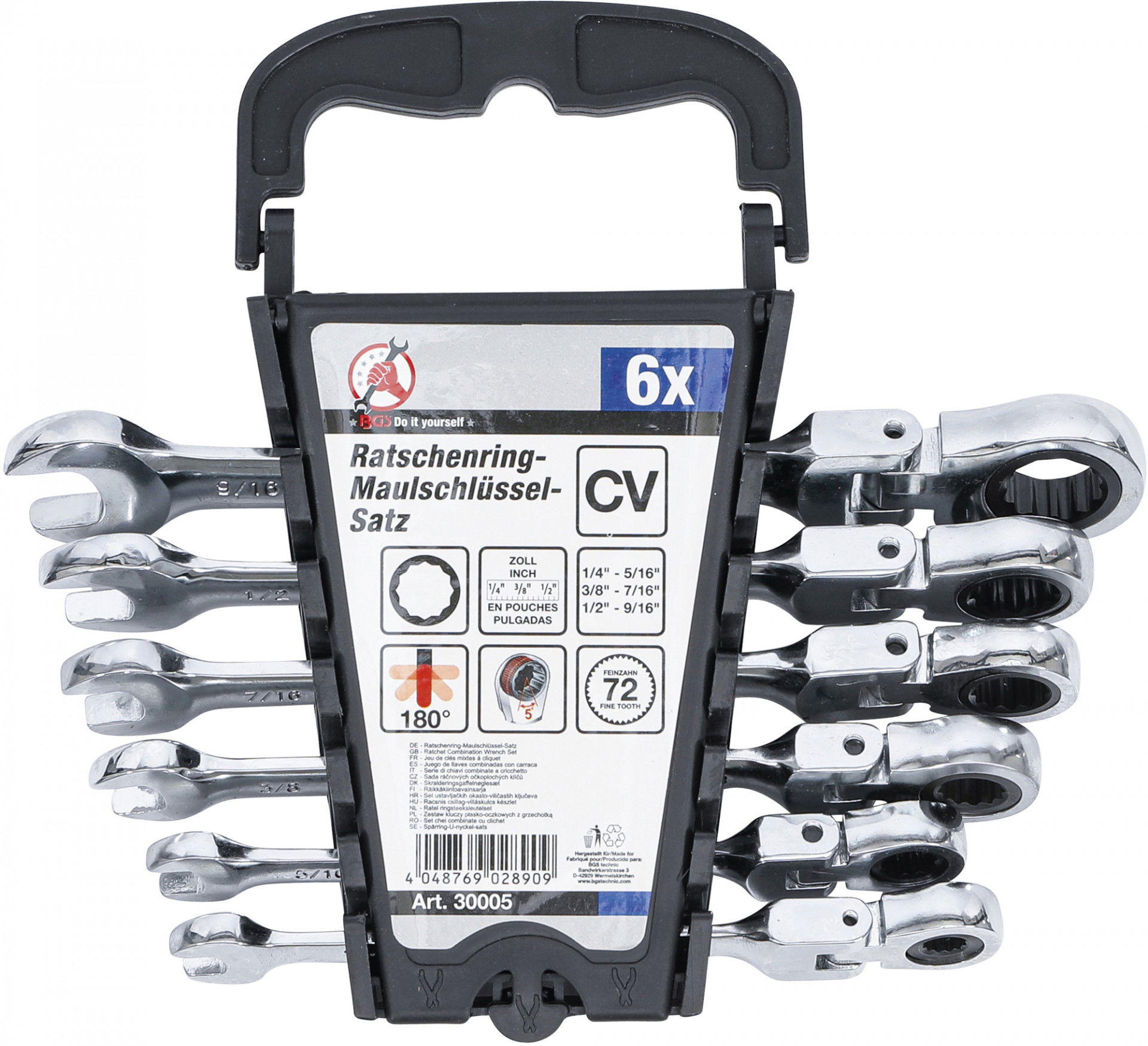 BGS Do it yourself 9-30005 csillag-villáskulcs készlet, 72-fogú racsnis-csuklós, colos, 6 részes